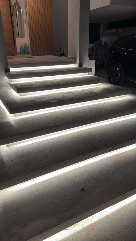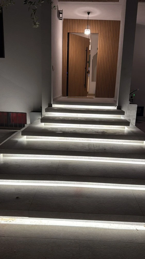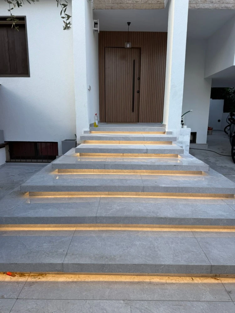 פרוייקט התקנת מדרגות חוץ מפורצלן דמוי בטון כולל תאורת לד בכפר סבא