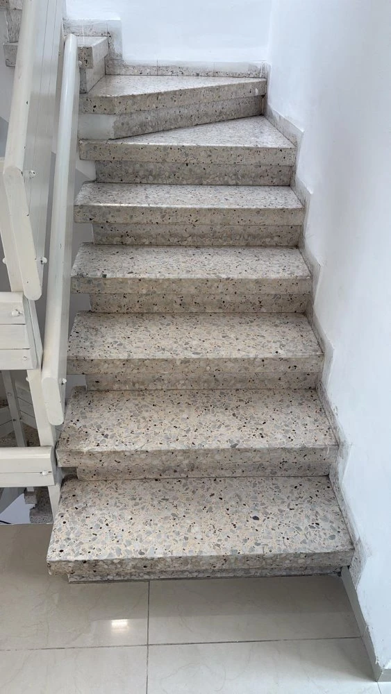 בית בקרית ביאליק מדרגות טרצו ישנות עם ריצוף ישן.